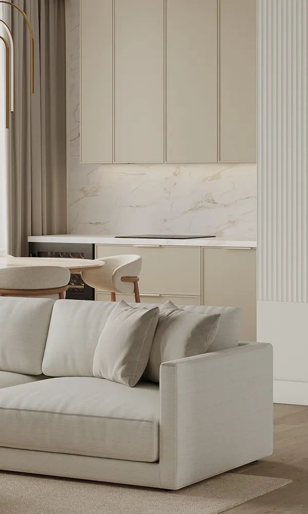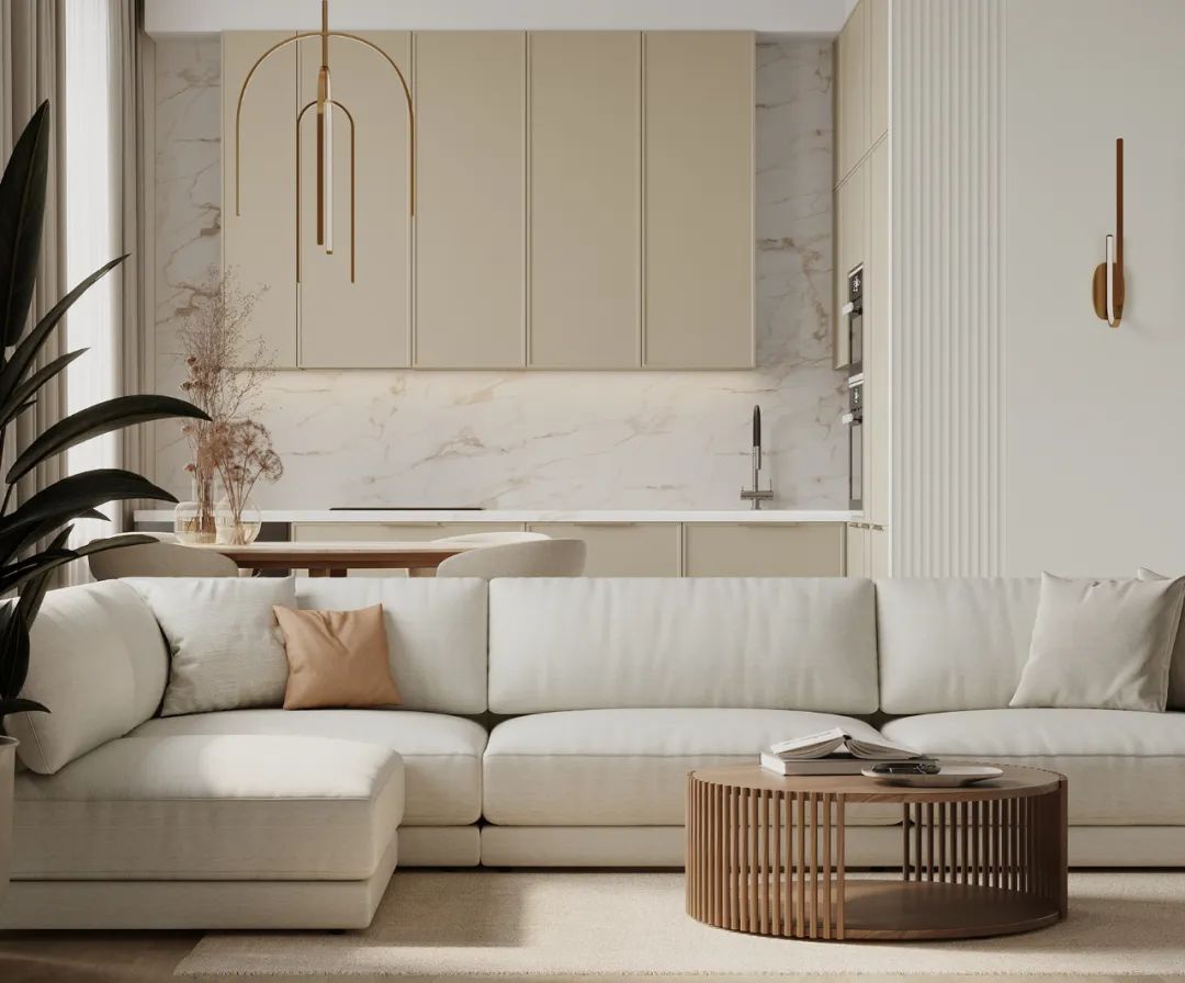 Intea Design新作,Cream Apartments,95㎡的奶油风住宅,整体采用低饱和的色彩,纯洁柔美,让空间整体呈现被细腻奶油包裹的温柔氛围,治愈力满满。