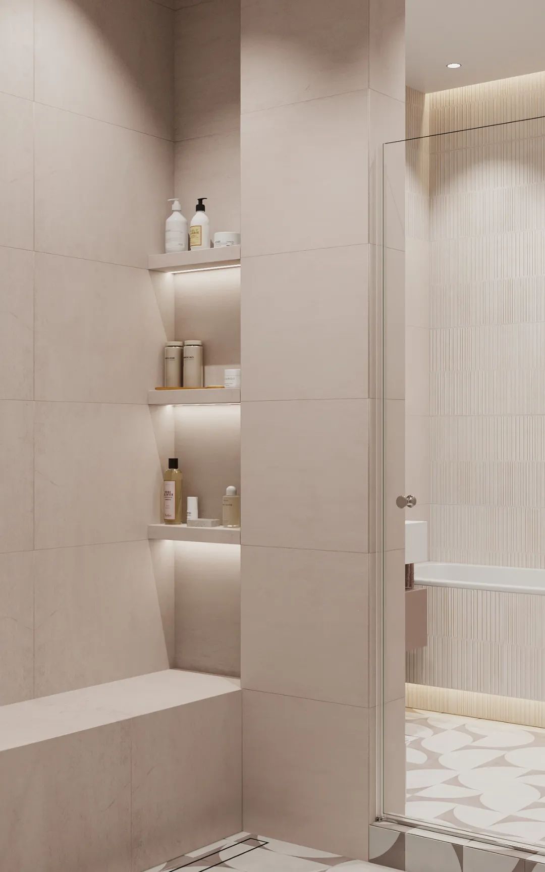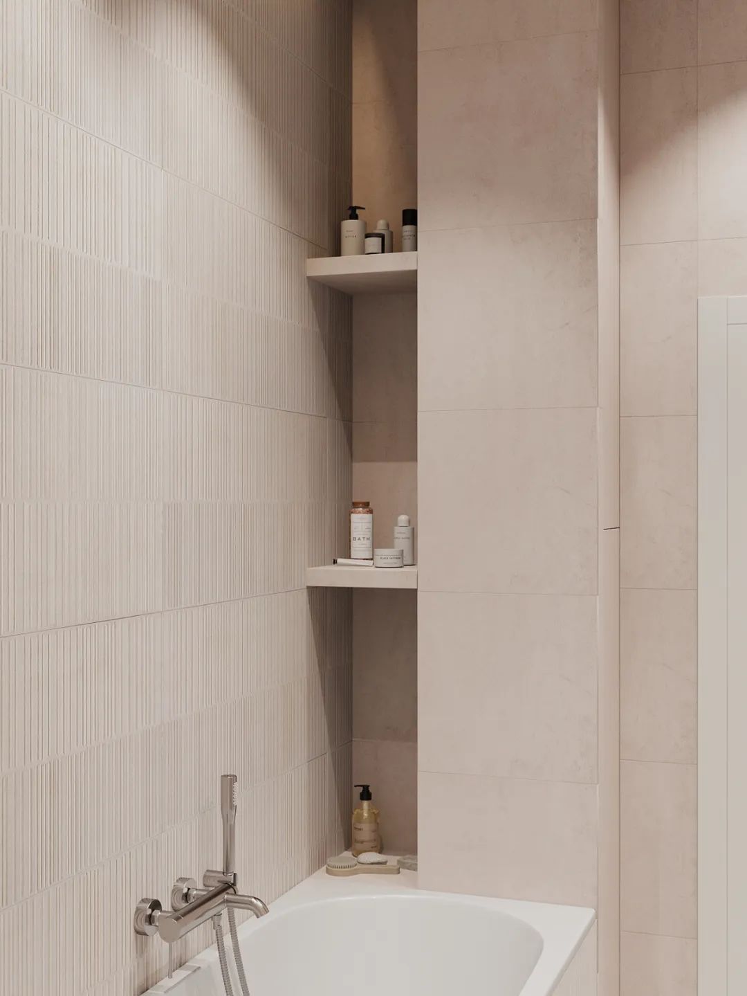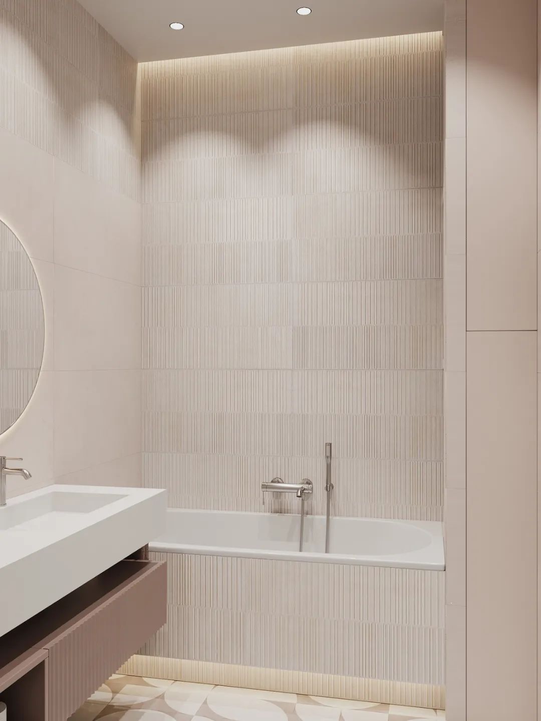 主卫色彩柔美,不仅颜值高还兼具实用性,有独立的浴缸,也有淋浴,宽敞的空间理想的布局,追求极简主义并不意味着拒绝设计的舒适性。