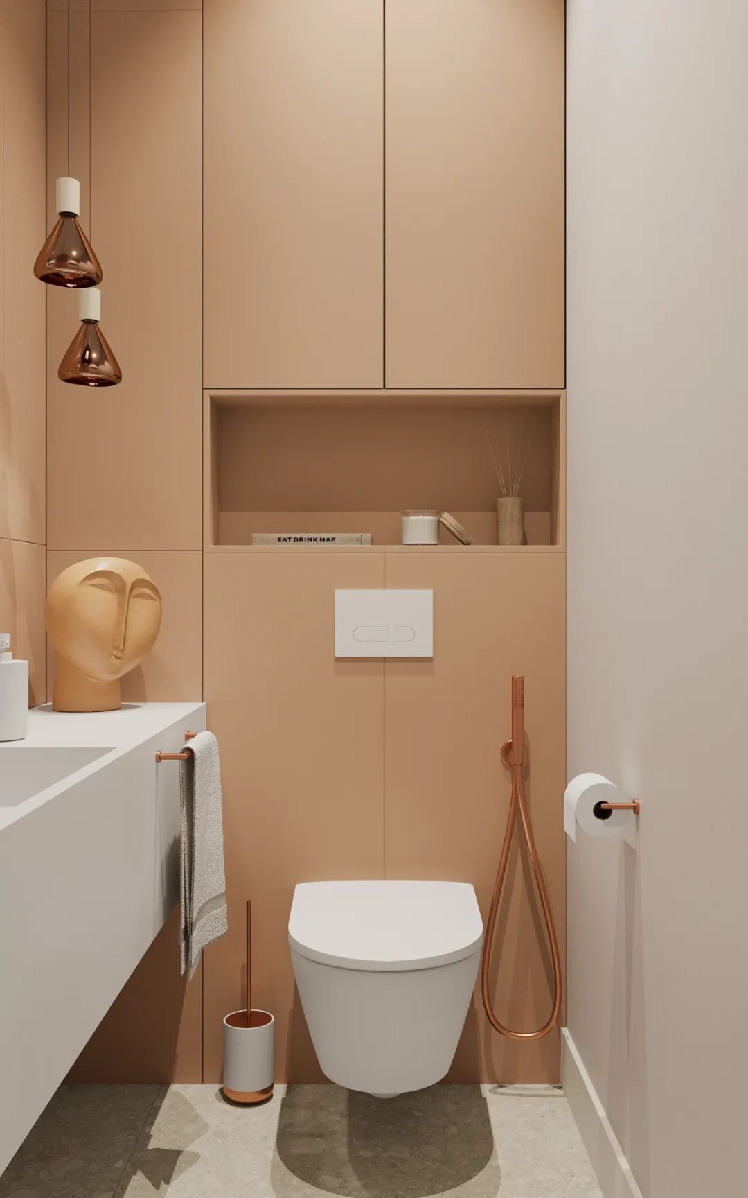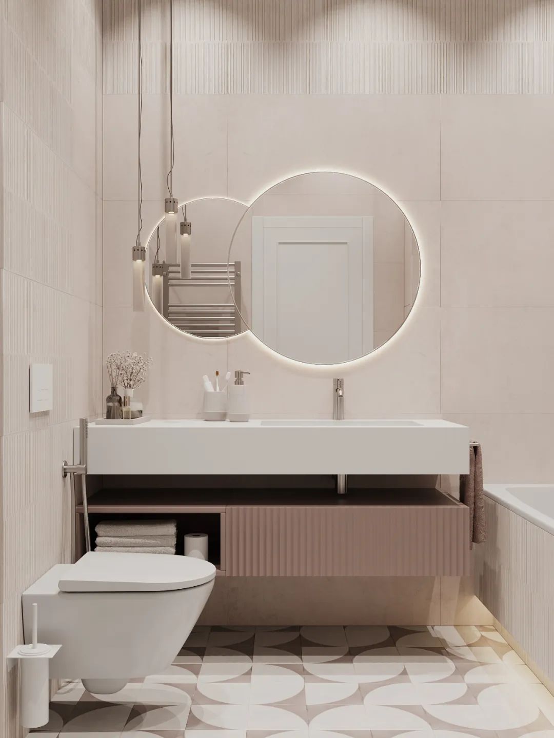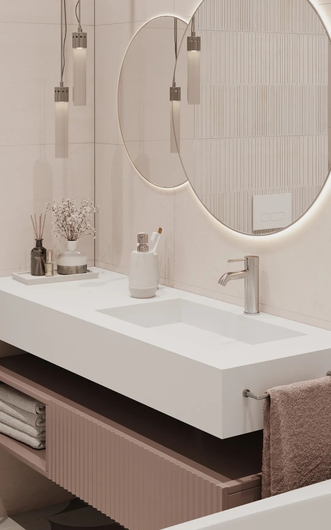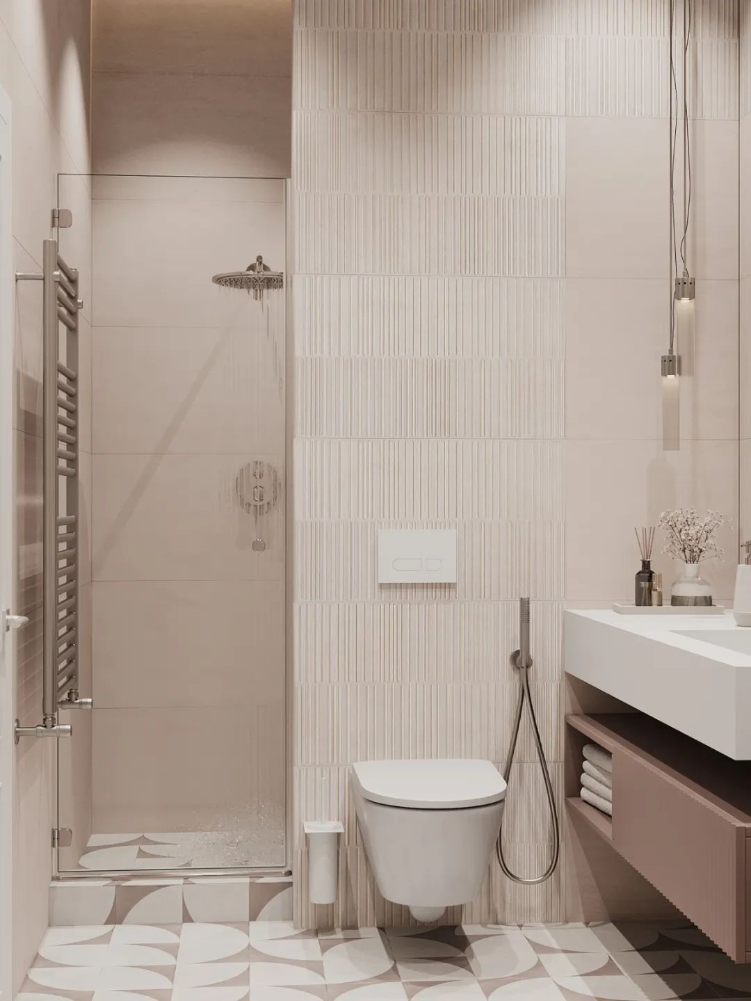 主卫色彩柔美,不仅颜值高还兼具实用性,有独立的浴缸,也有淋浴,宽敞的空间理想的布局,追求极简主义并不意味着拒绝设计的舒适性。