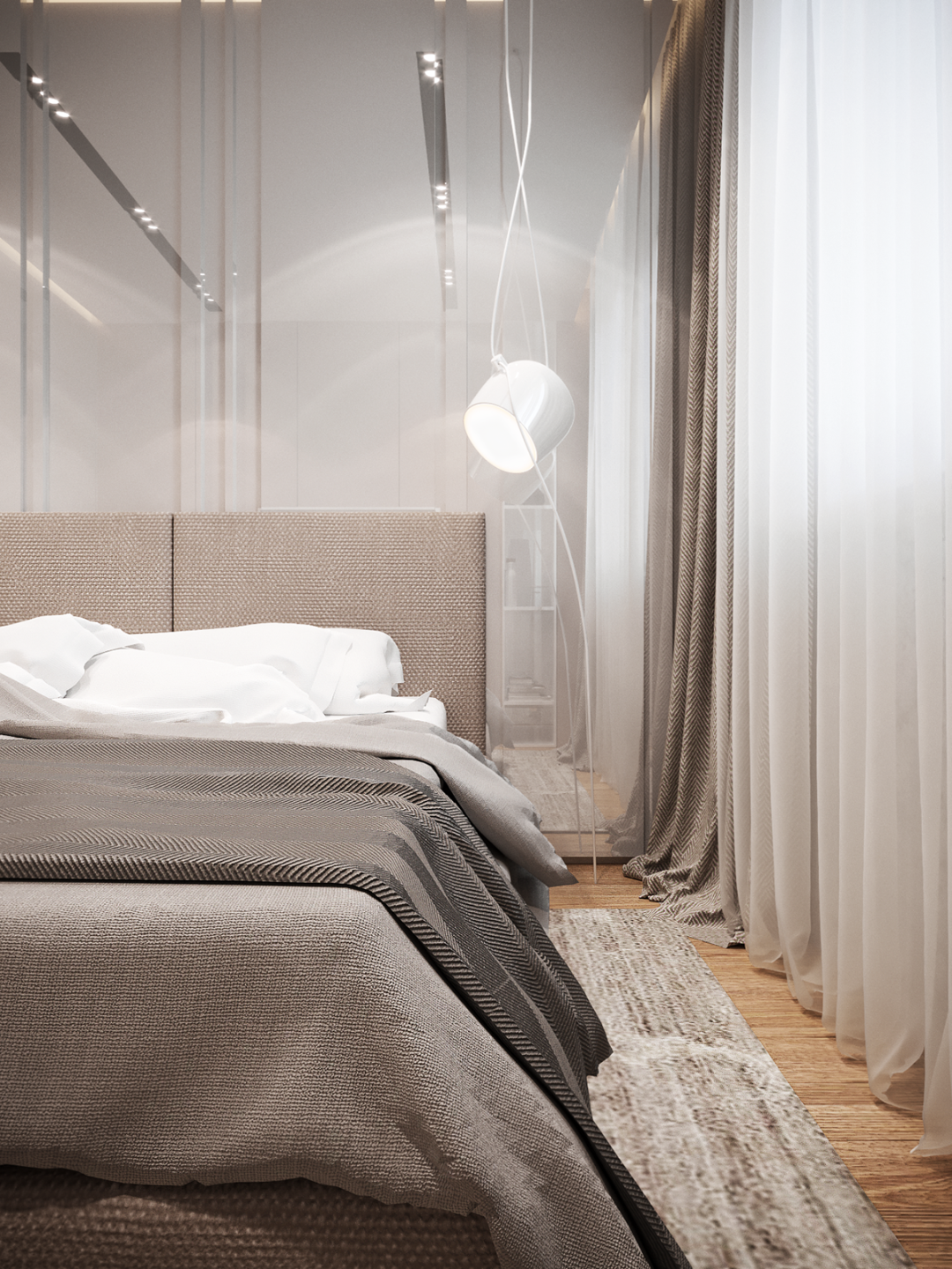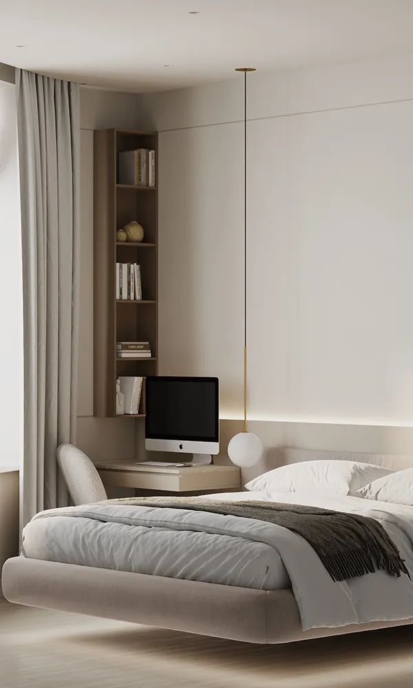卧室在满足私密需求的同时,让简约的颜色重新焕发魅力。细腻温柔的色调让人沉醉于休憩时光,诠释着主人对美的品味追求与超凡脱俗的气质。