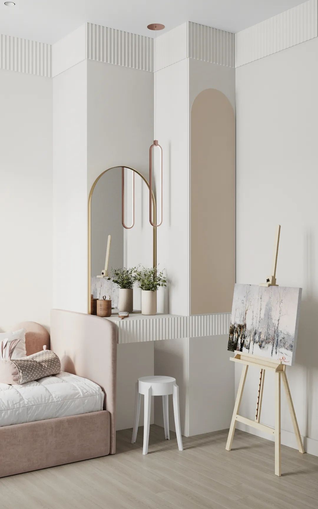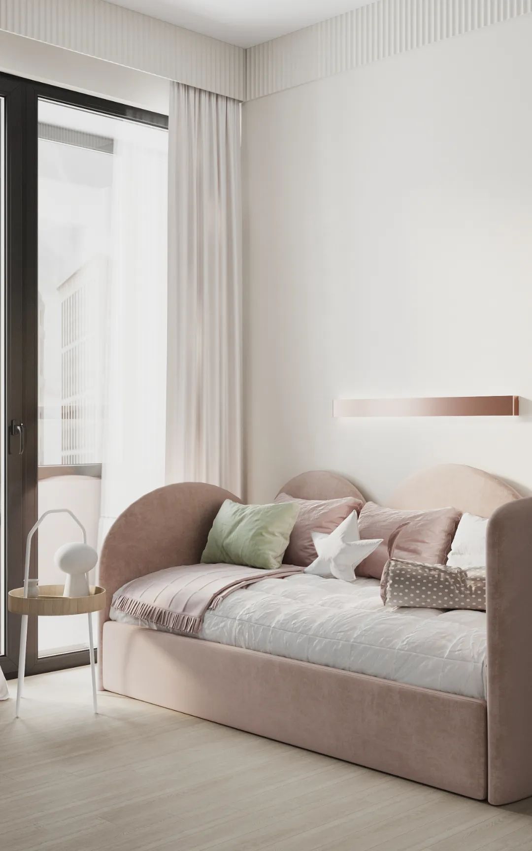 粉色的儿童房弥漫着静谧安宁的氛围,舒适温馨。