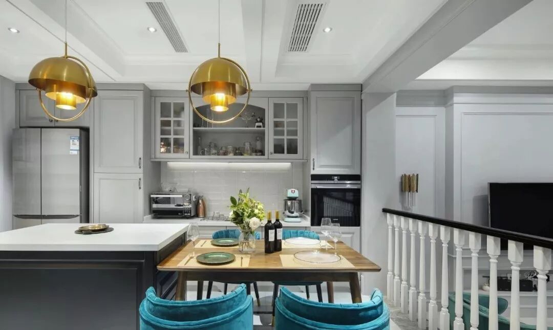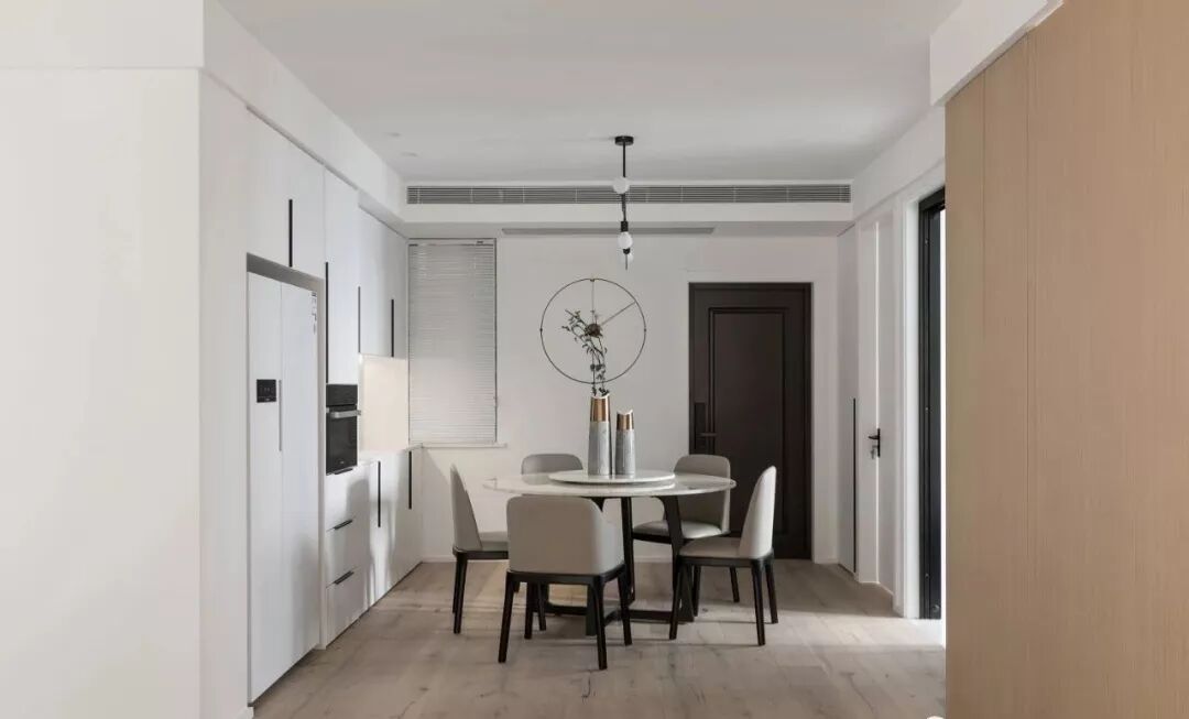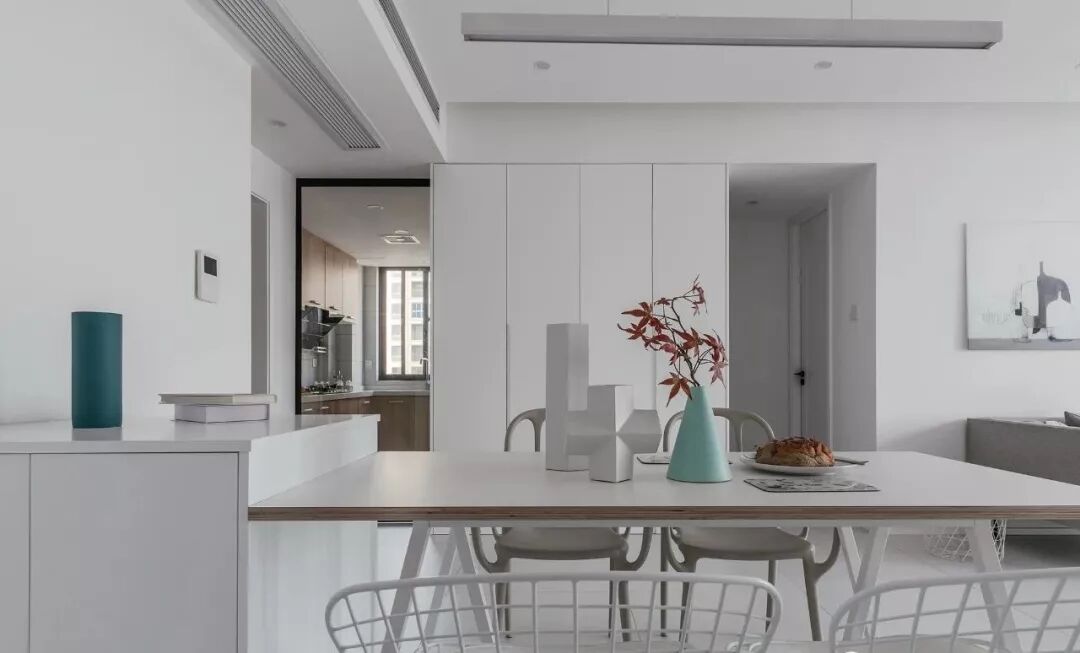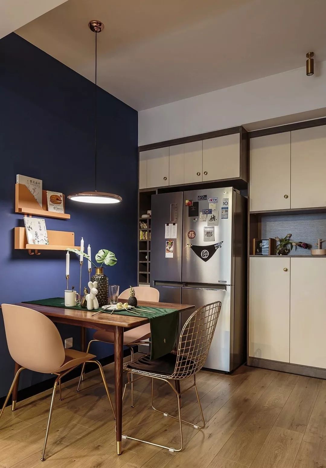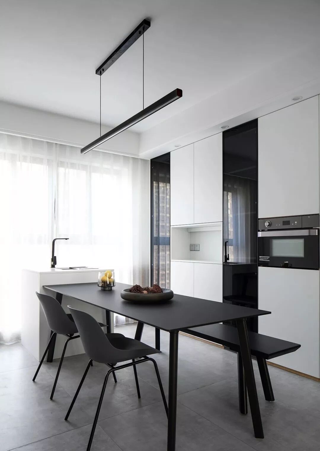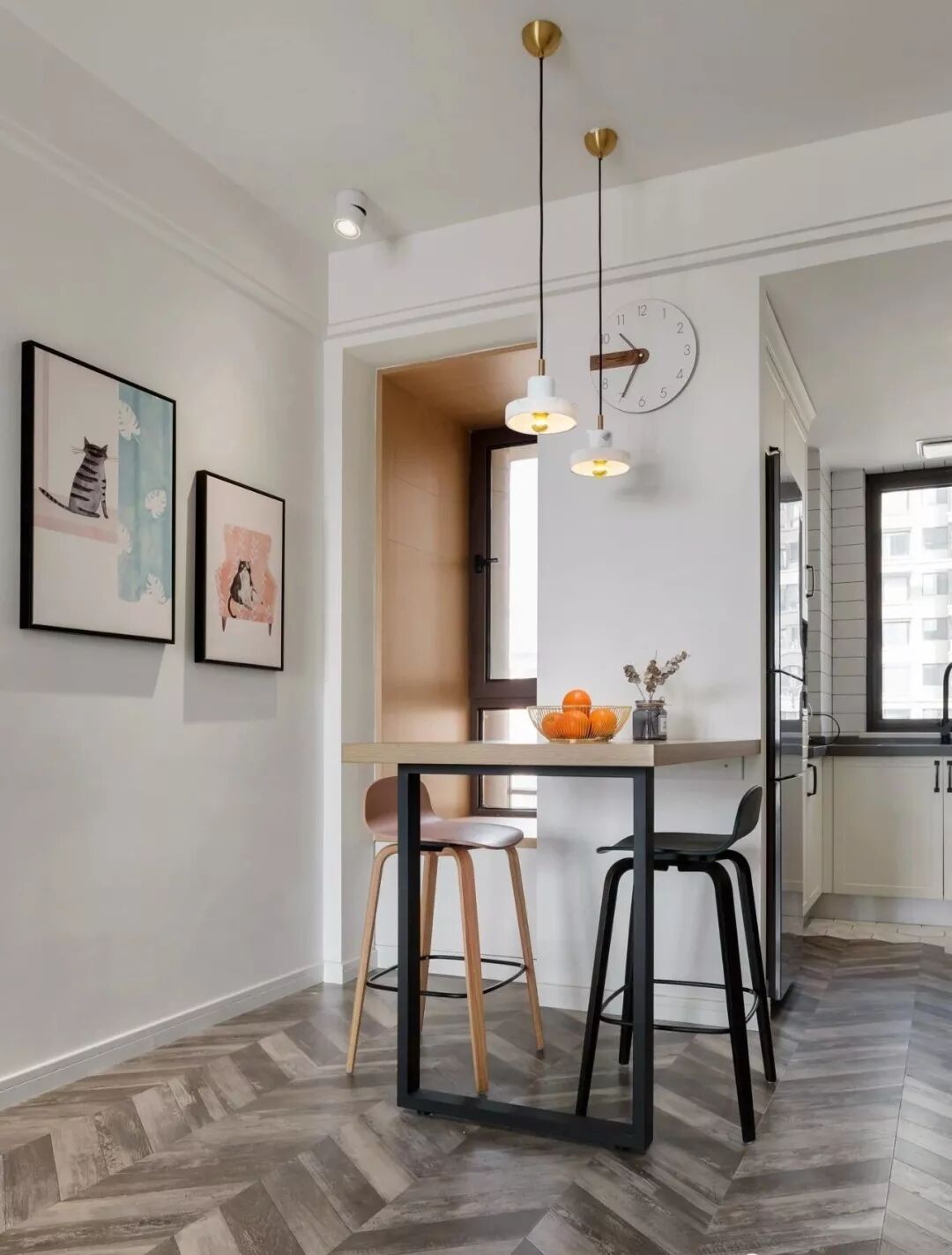 如果家里用餐人口少,或者很少下厨的话,餐厅可以尽量缩小,也可以用吧台代替,或者是可以折叠的餐桌,都是不错的选择。