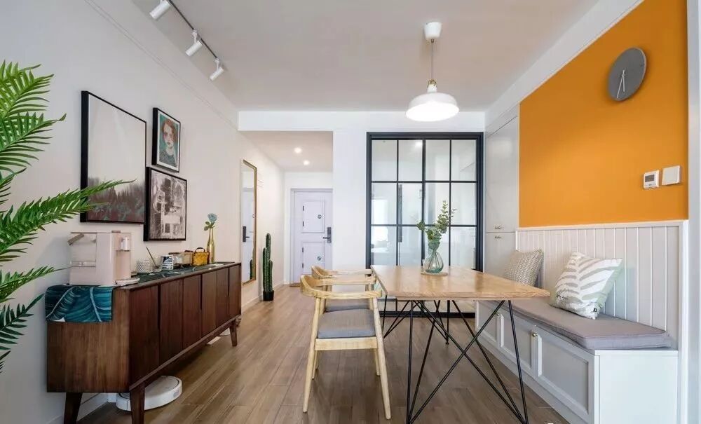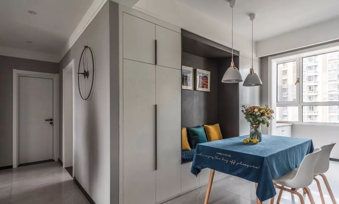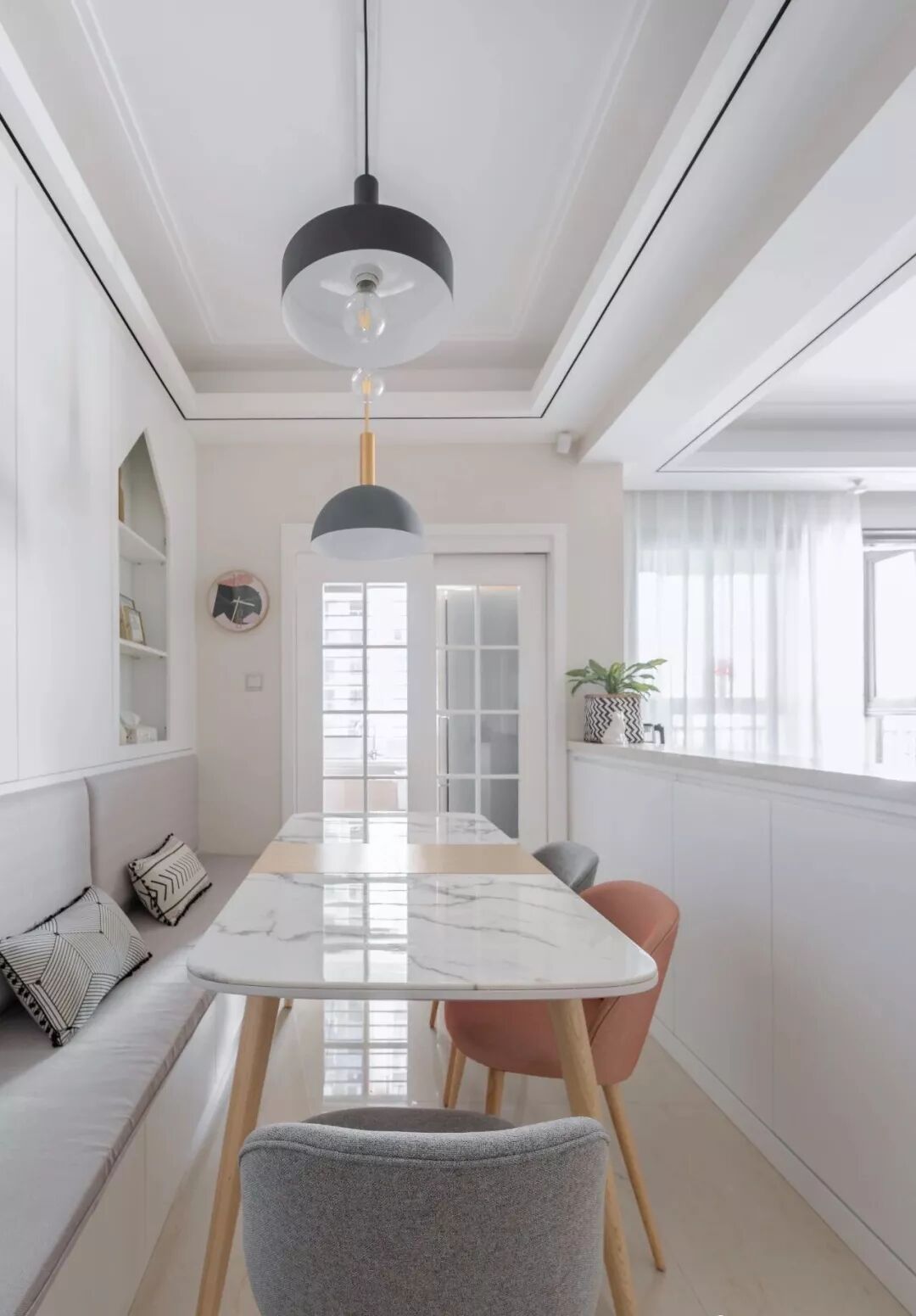 小户型餐厅越来越流行卡座设计,卡座也有很多优点,比如节省空间、增加储物等等。