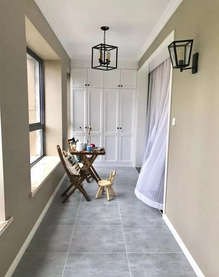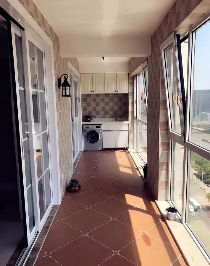对于喜欢小瓷砖的人来说,长条的阳台,可以选用小瓷砖来铺设,或者买大片的瓷砖通过改型也是可以的,只要根据阳台的长度和宽度,顺着铺设就好了,另一方面因为阳台的面积本来就不是很大,小空间选用小瓷砖更能衬托处空间的体量感,就好像肥人适合穿竖条纹衣服才不会显得胖,瘦人适合穿横条纹不显得瘦是一个道理,这样阳台瓷砖尺寸选择比较小的还是不错的。
