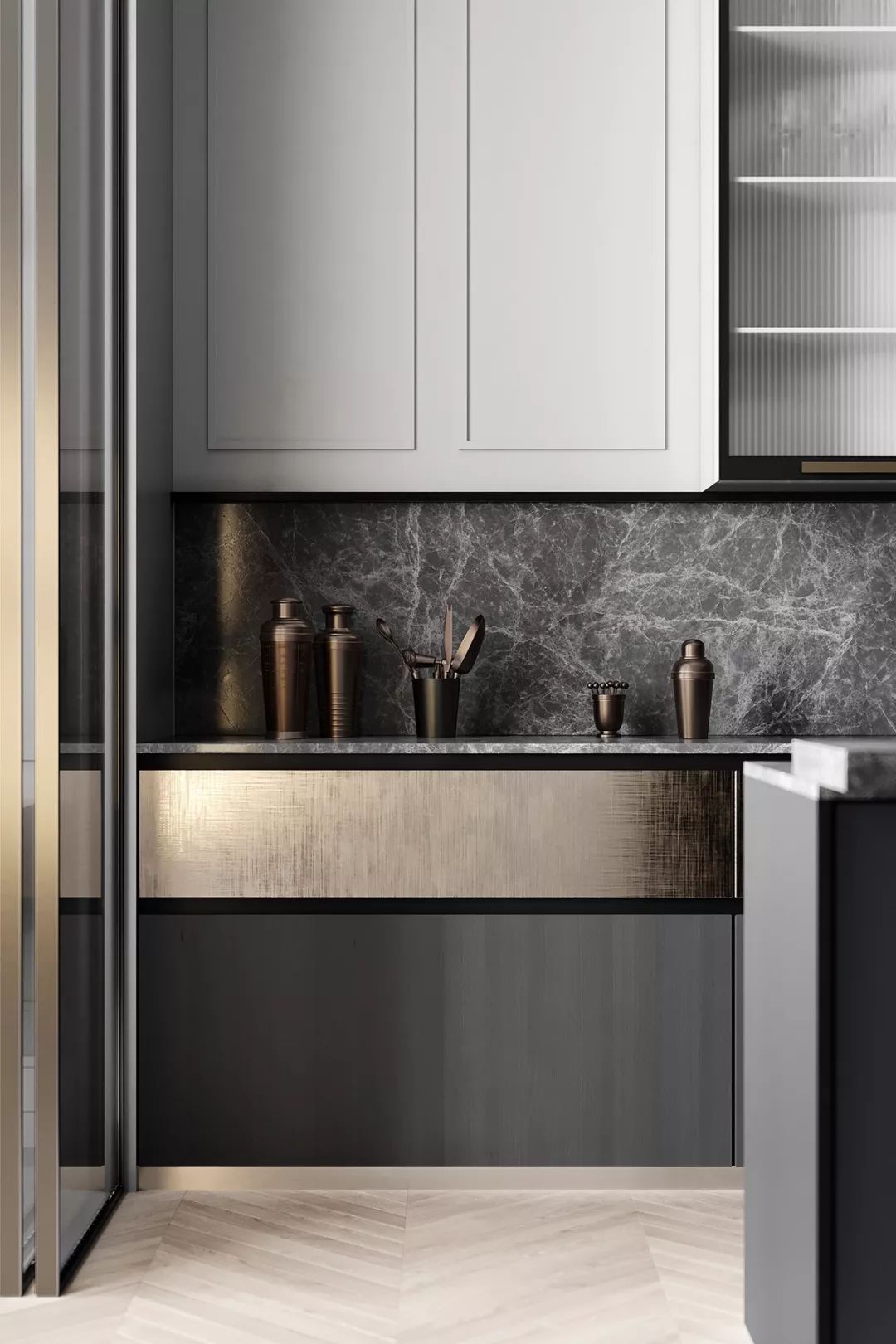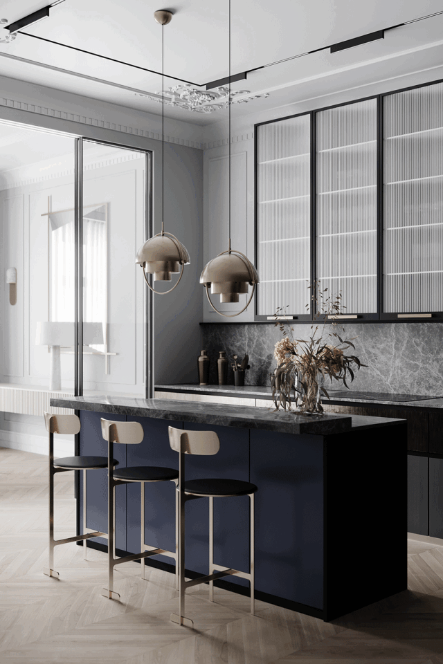 深蓝色的橱柜也可以让空间一下子有高贵感,