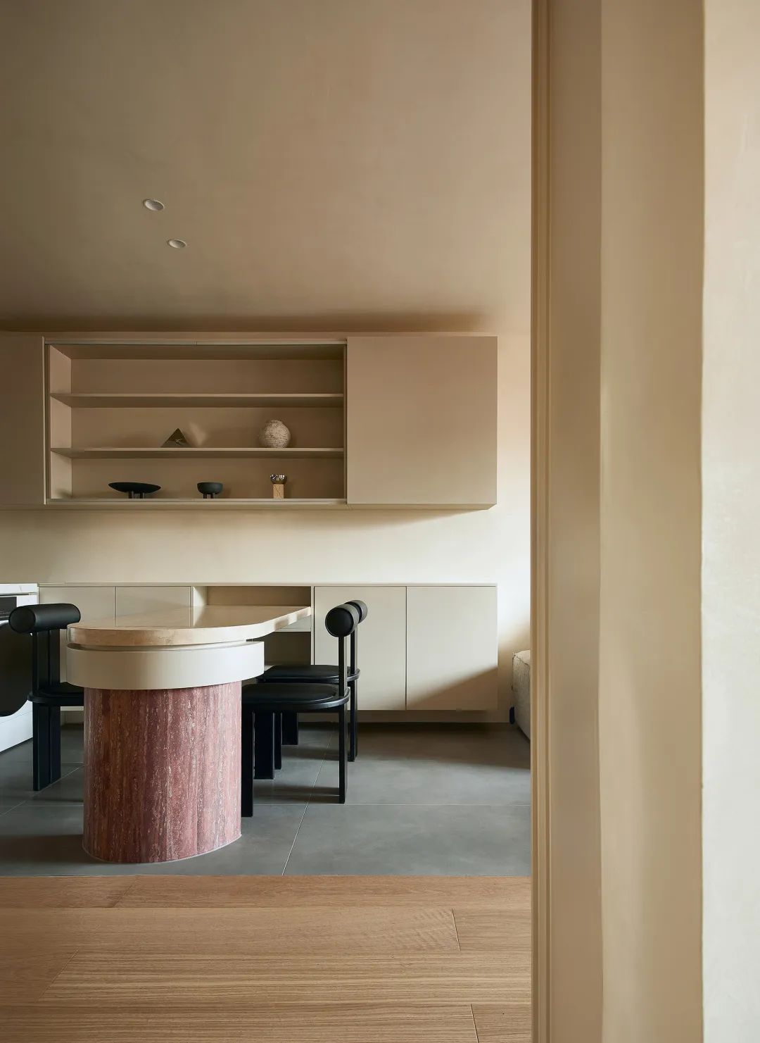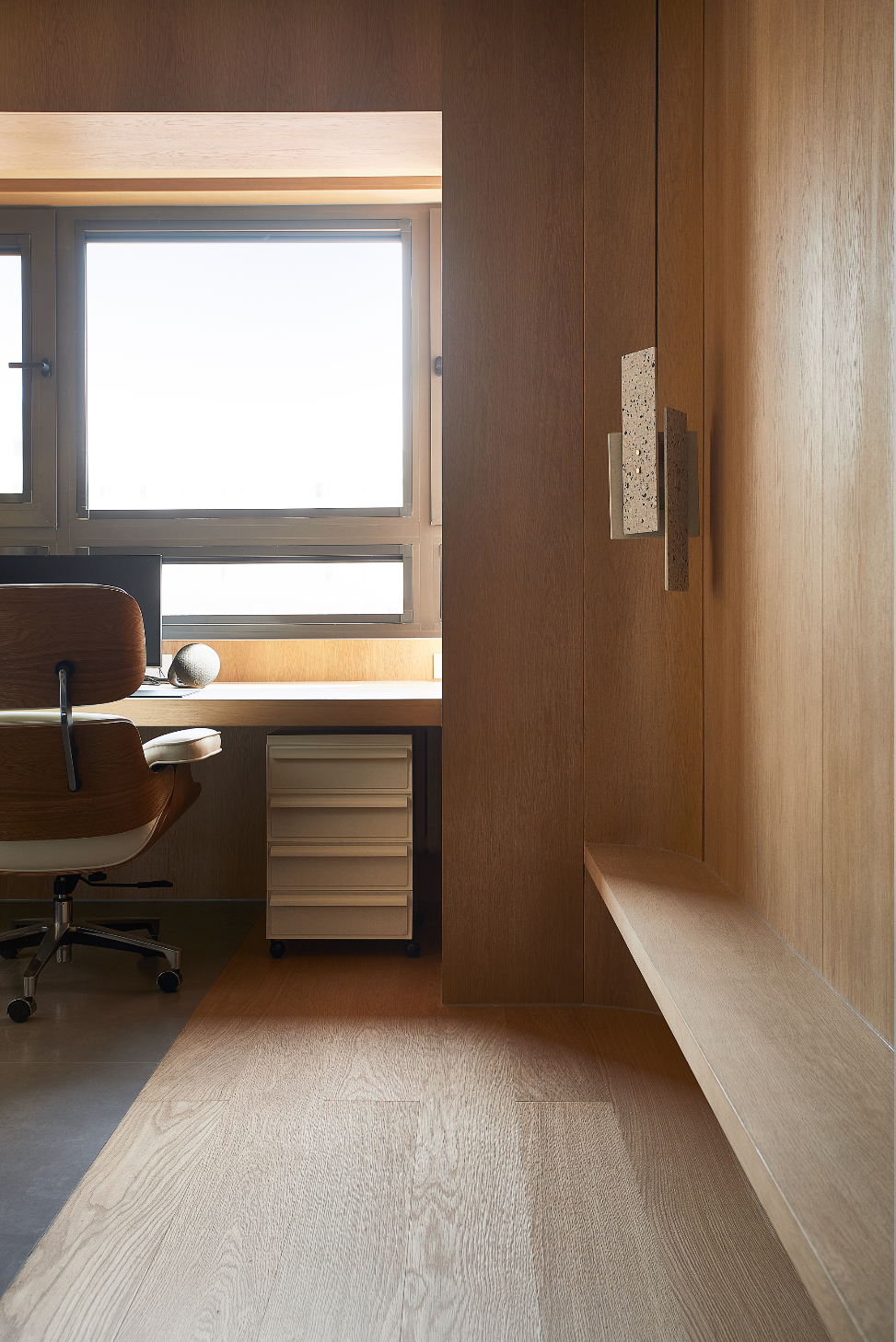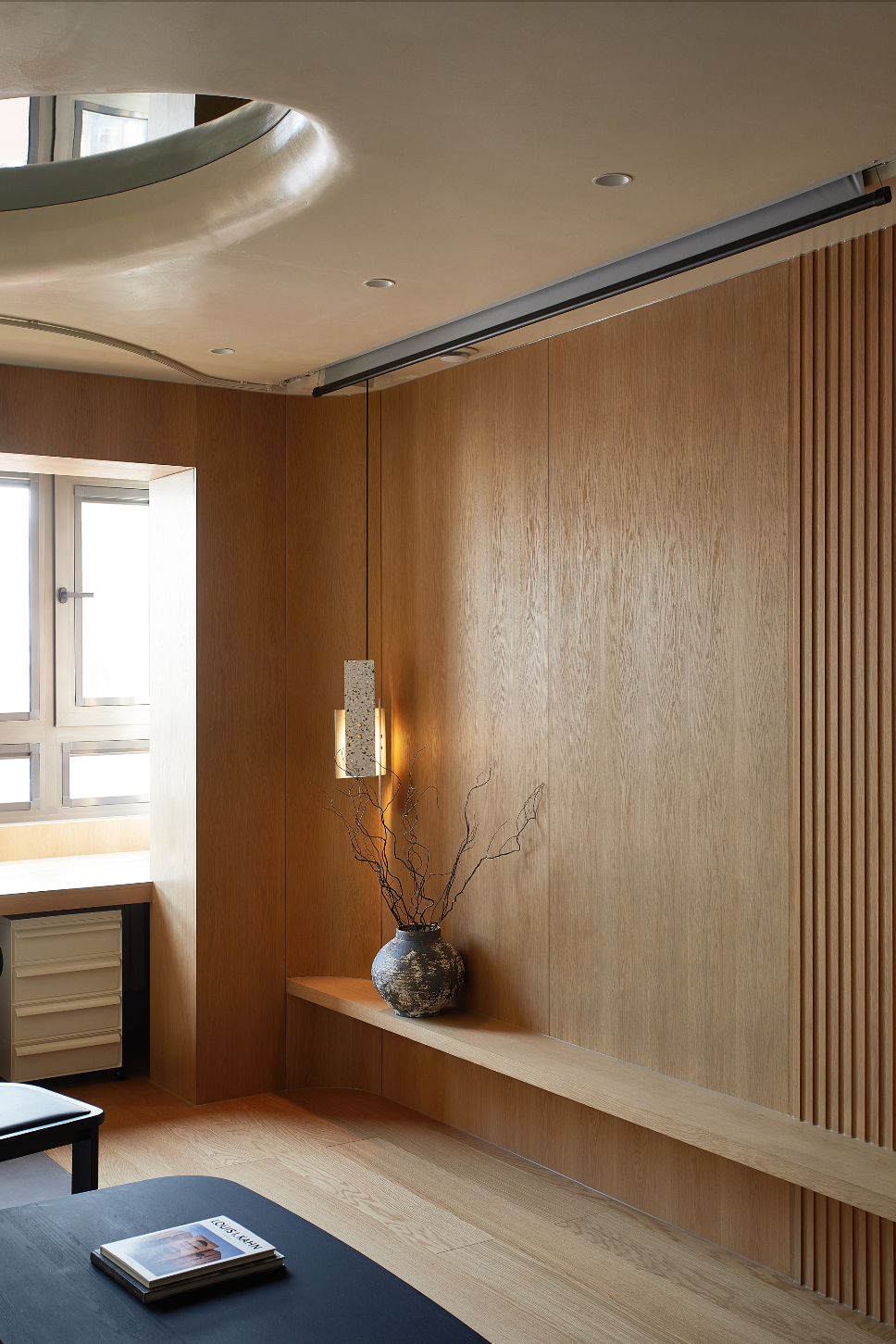 木饰面从墙面延伸到阳台,