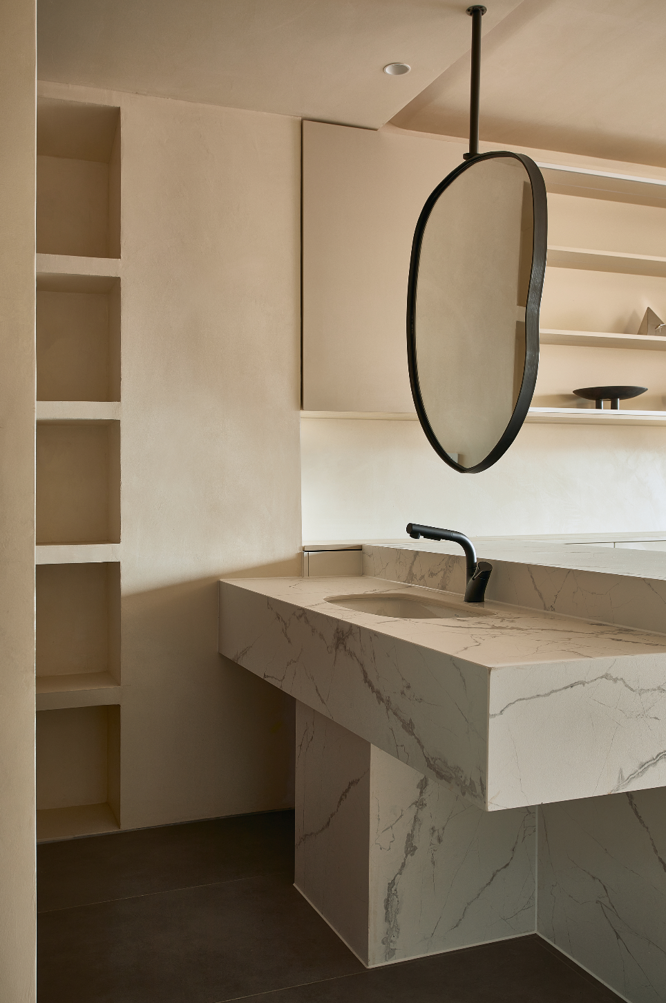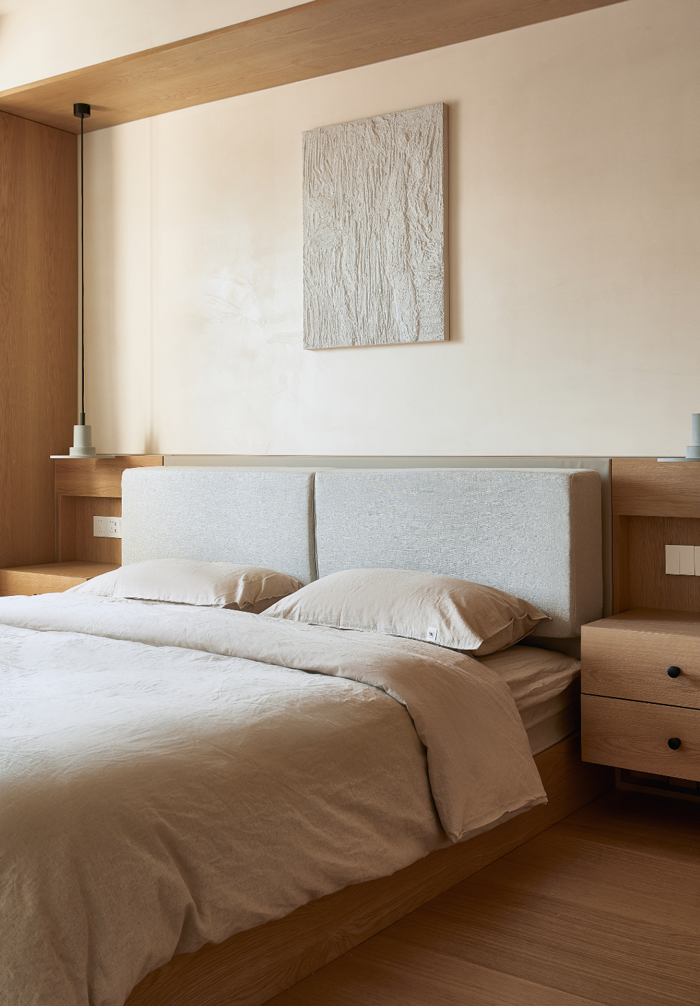 墙面全部是肌理感的浅沙色,